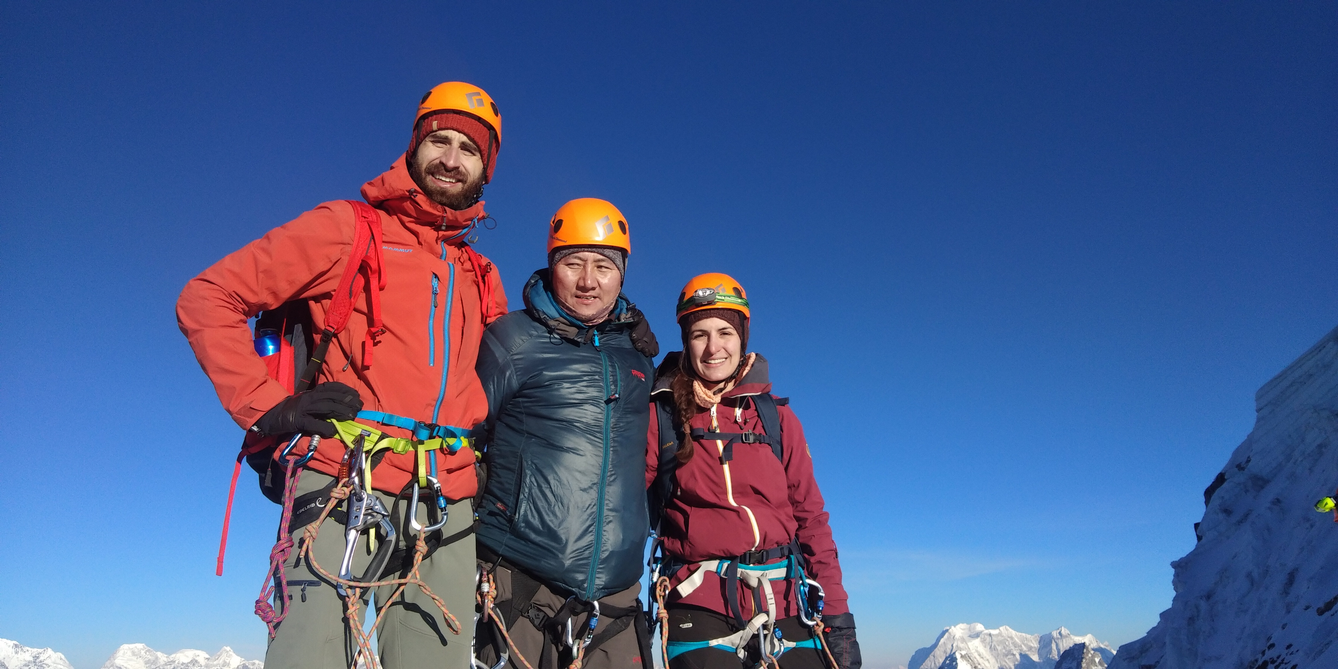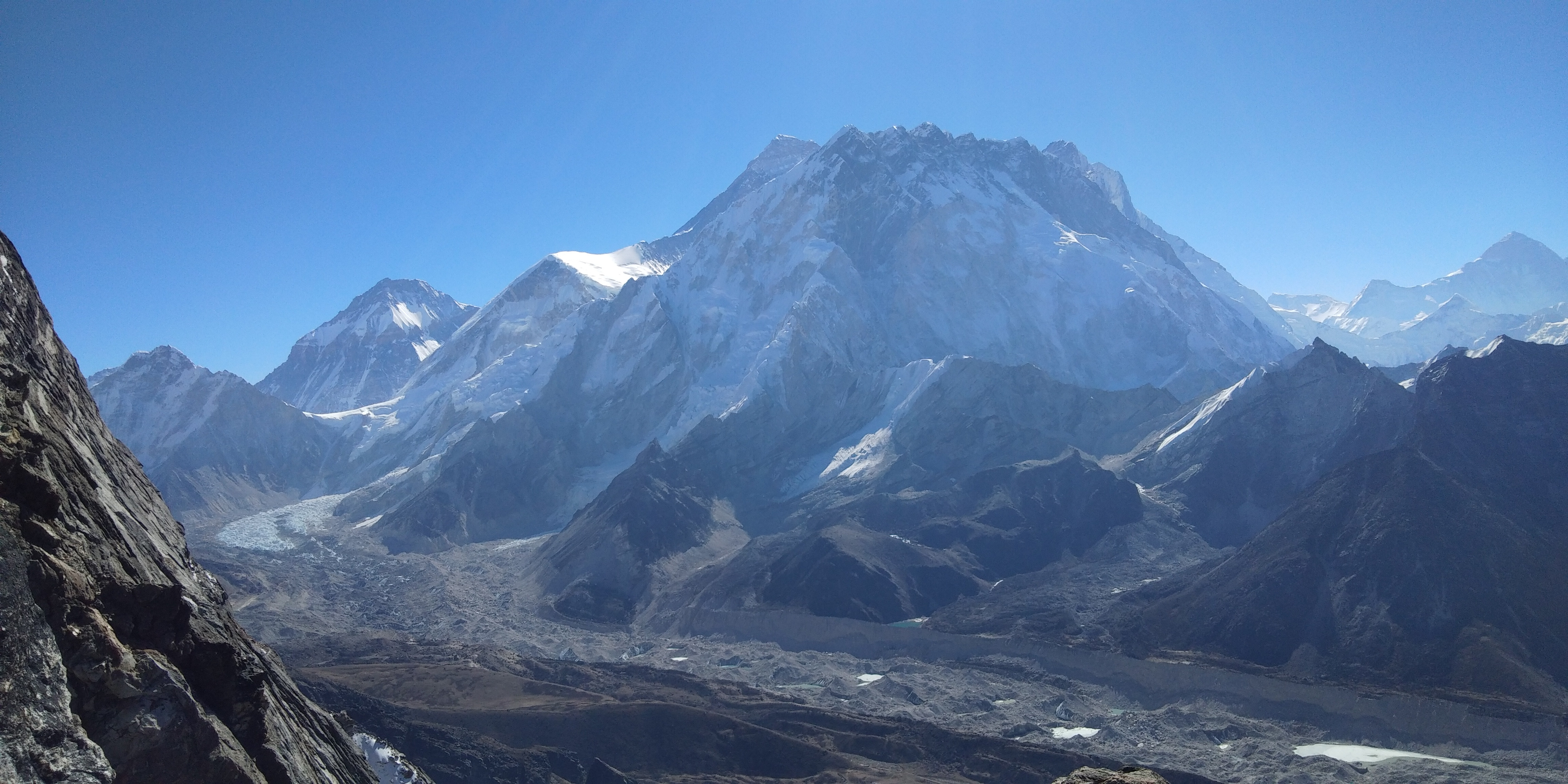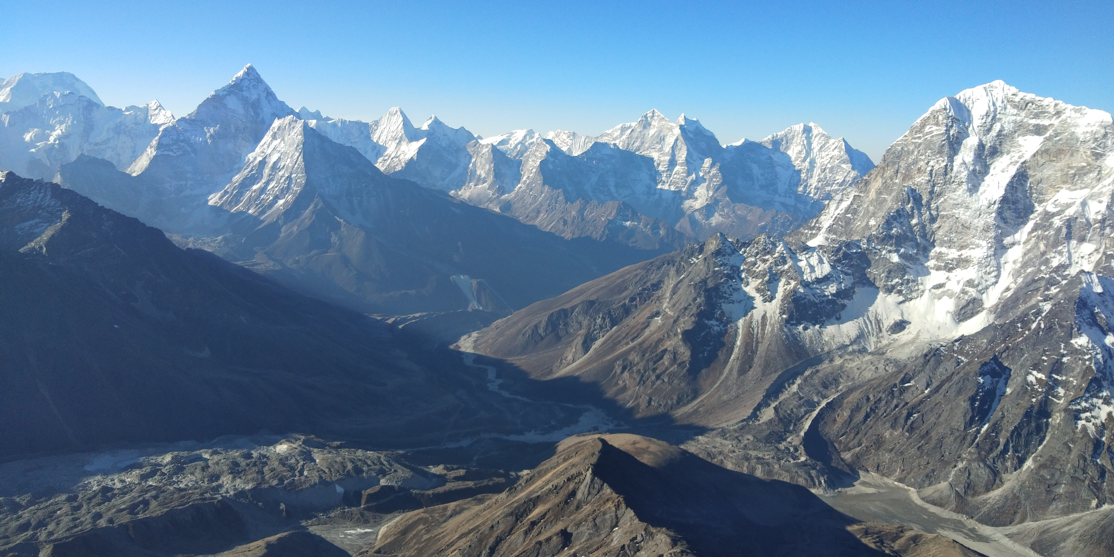 Today is our main target point and one of the chalanging day of this trip. This is one of the great experience ever.We start preety early. We wake up around 1 AM , have breakfast at 1:30 and leave at 2 AM with full gears up. There is Crampon point which is 3 hours from highcamp but we use the crampons as our requirement ,incase of lot of snow and ice below Crampon point. Until crampon point we don’t use rope.We climb steep on the Rock until crampon point.From crampon point steep section of climbing begins. From we go by jumaring on rope and full of safety on Ice and Snow. For the first time climber, initially you will feel discomfort with all gears up. 3 hours of steep climb will brings us in Summit of Lobuche. From where the spatacular views of All the mountains around as Mount Pumori, Mount Everest , Mount Nuptse, Mount Makalu, Mount Amadablam and so on.We spent about 30 minutes to take pictures and explore the views with having pack lunch.Then we descent down with rapelling. After we get down to highcamp, we will have some noodle soups then heading down to Pheriche.